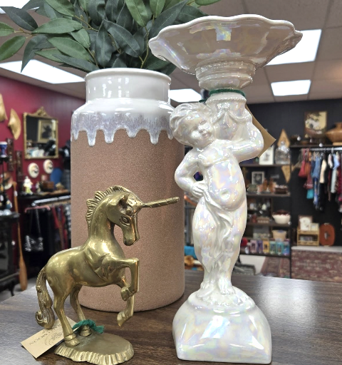 Leah is one of our consignment vendors, offering beautifully curated home décor and kitchenware. Her selection is full of statement pieces that bring warmth and character to any space, and she’s a gem to know as well.